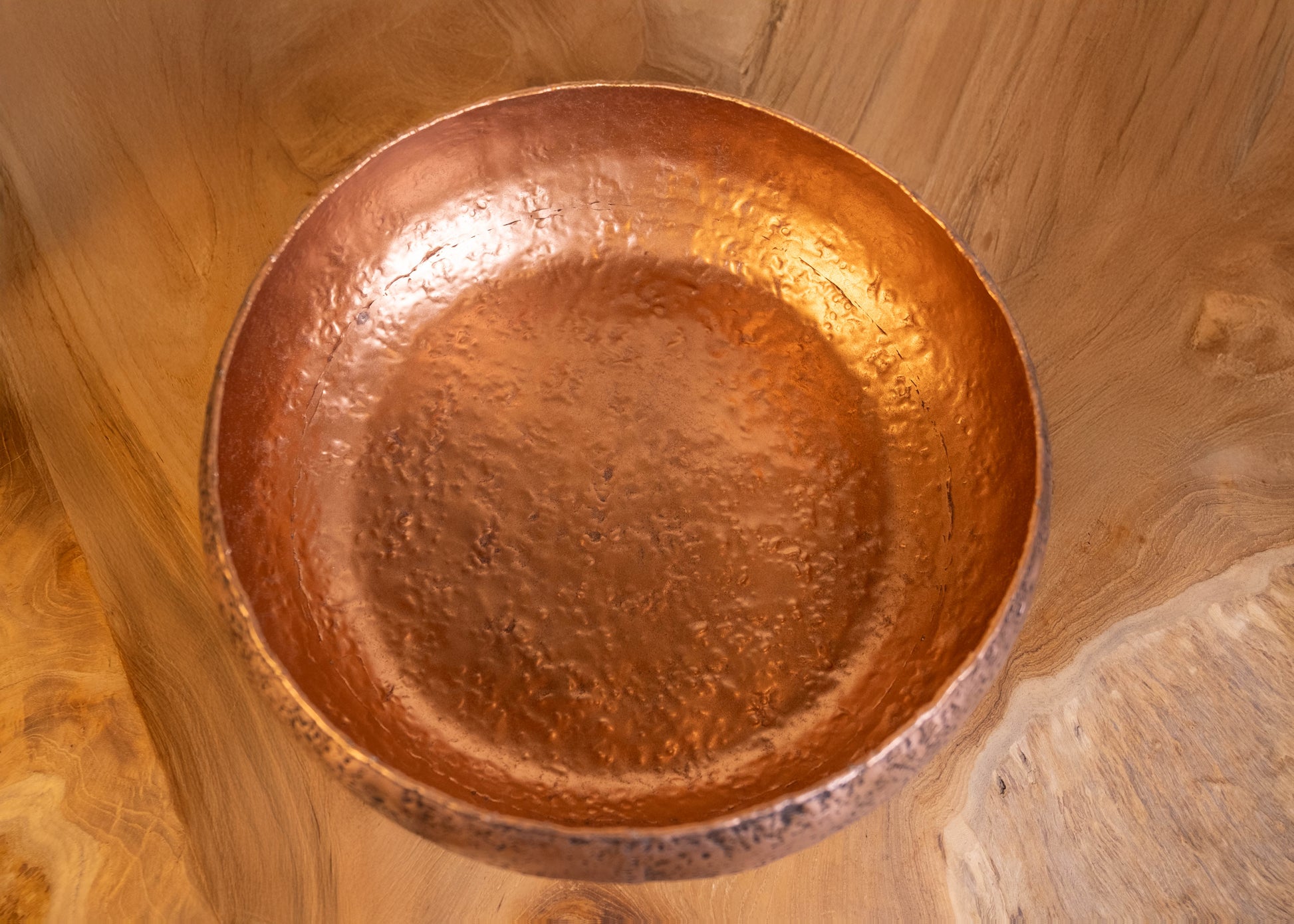With its versatile deep design, this bowl is ideal as a centerpiece, fruit bowl, or decorative accessory for your living room, dining table, or kitchen. The handcrafted texture adds depth and character, while the copper material exudes sophistication and durability.
