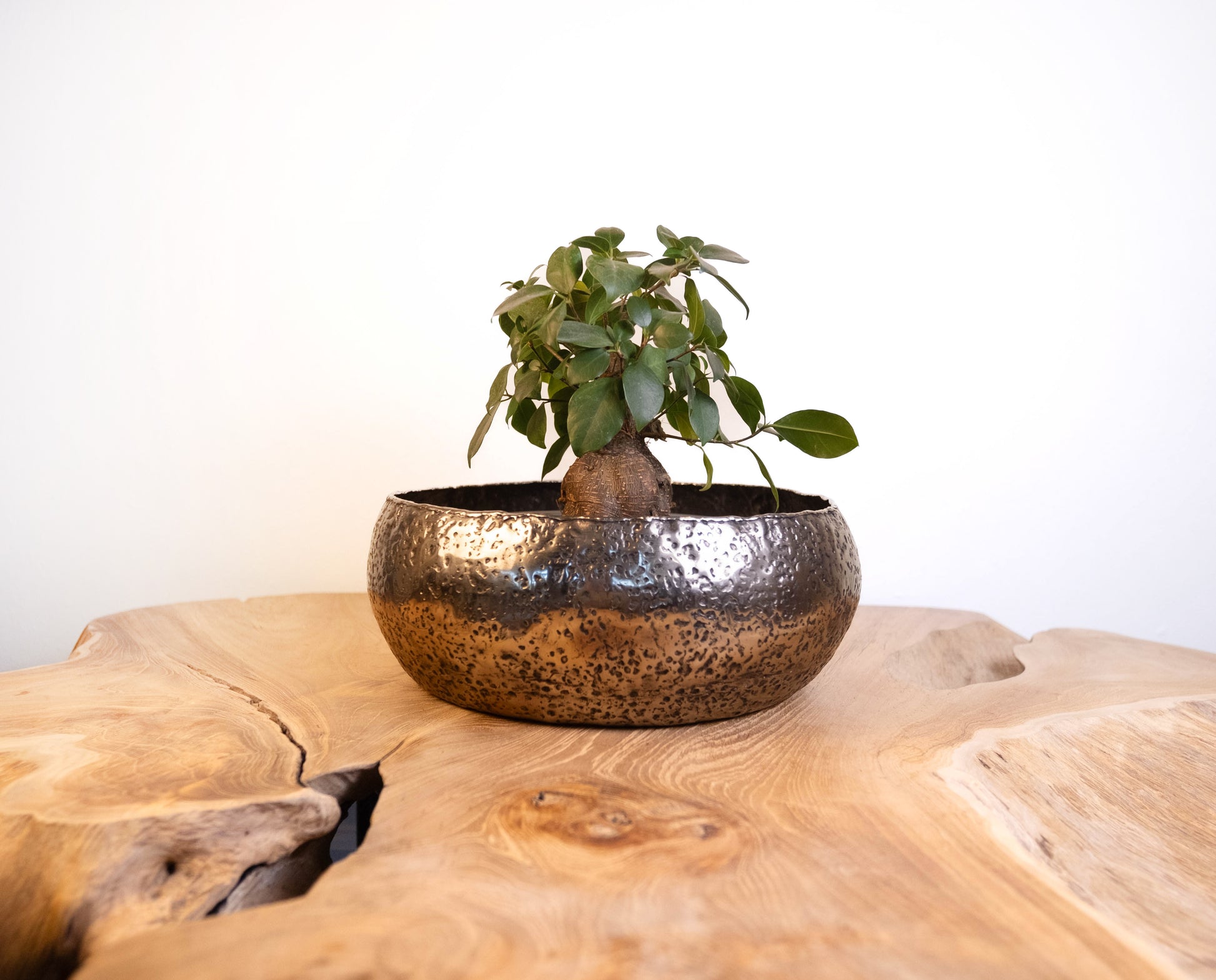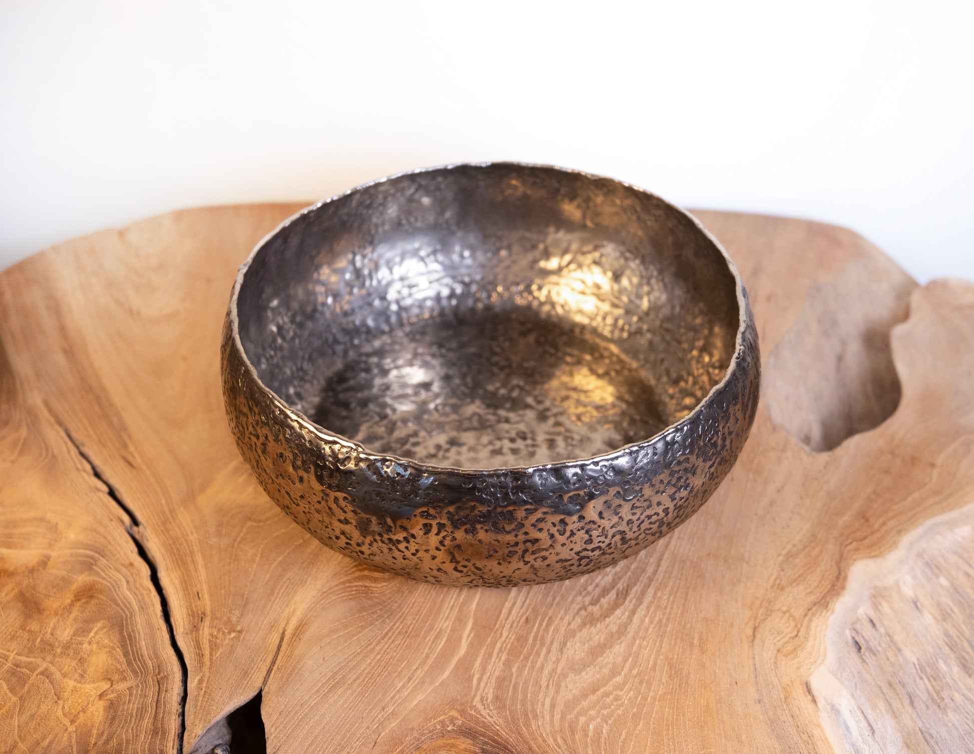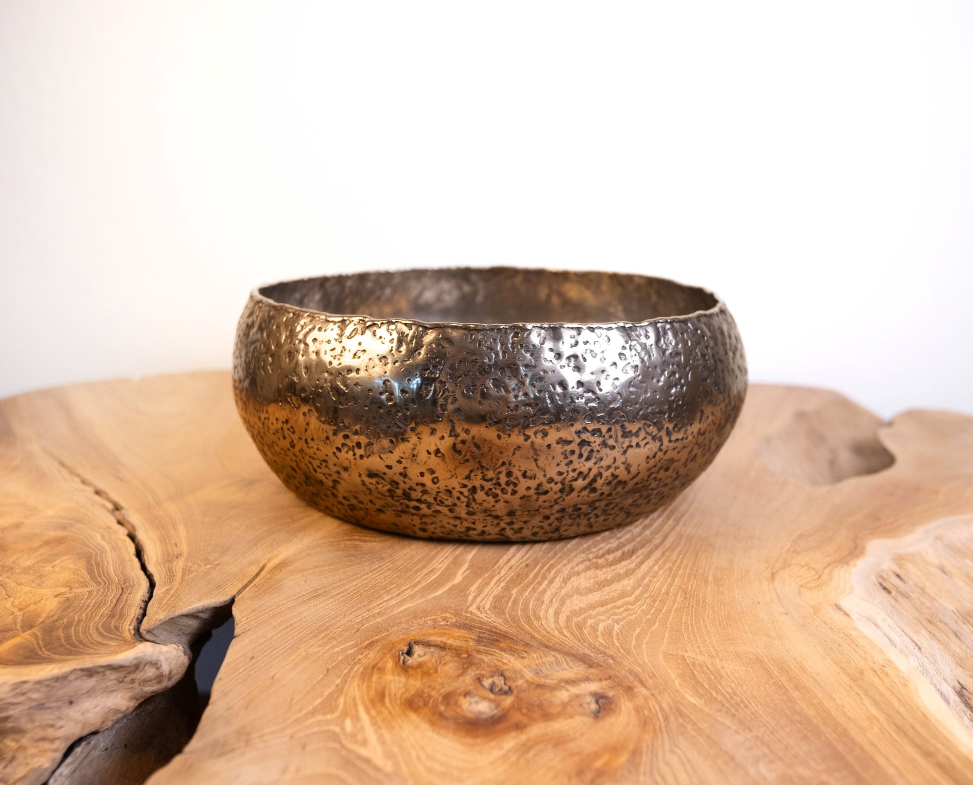 Bring a bold and contemporary touch to your space with this handcrafted gunmetal textured bowl. Designed with a unique textured finish, this piece beautifully balances raw texture with a sleek metallic tone, creating a striking centerpiece or accent piece for any room. Its deep, rounded design is perfect for holding fruits, decorative objects, or standing alone as a statement piece.