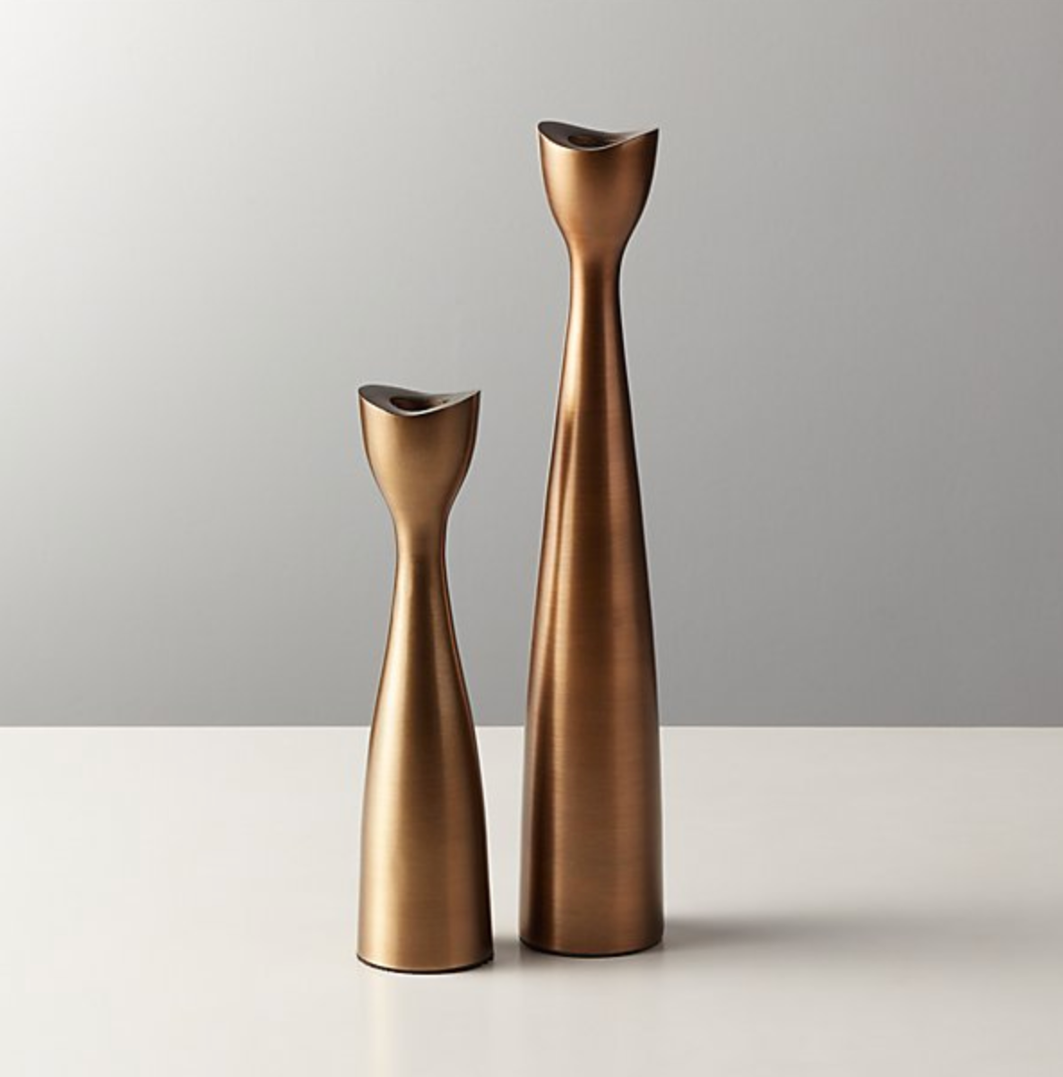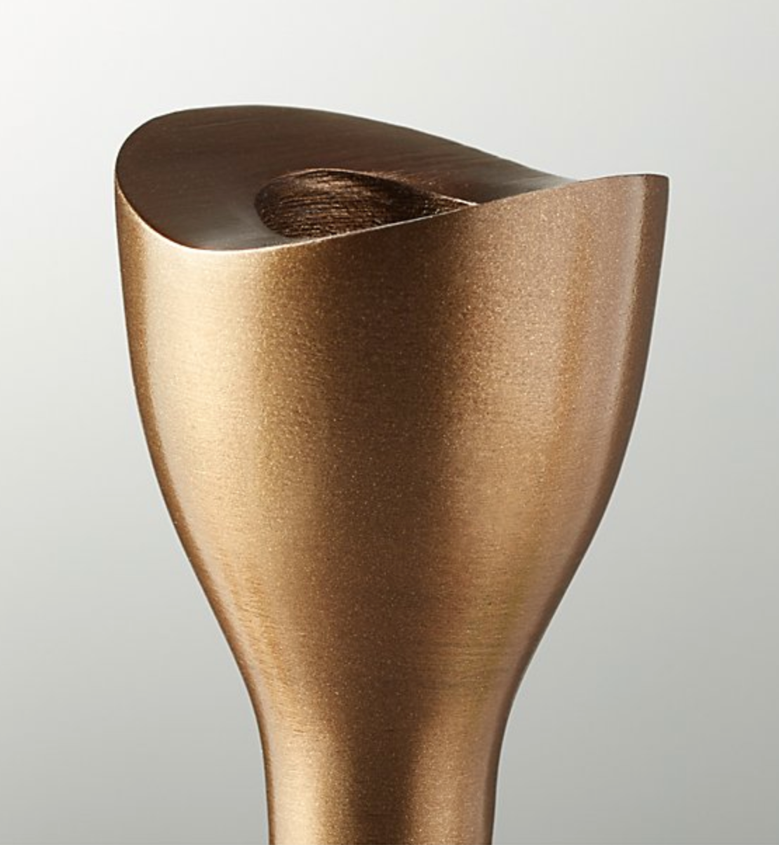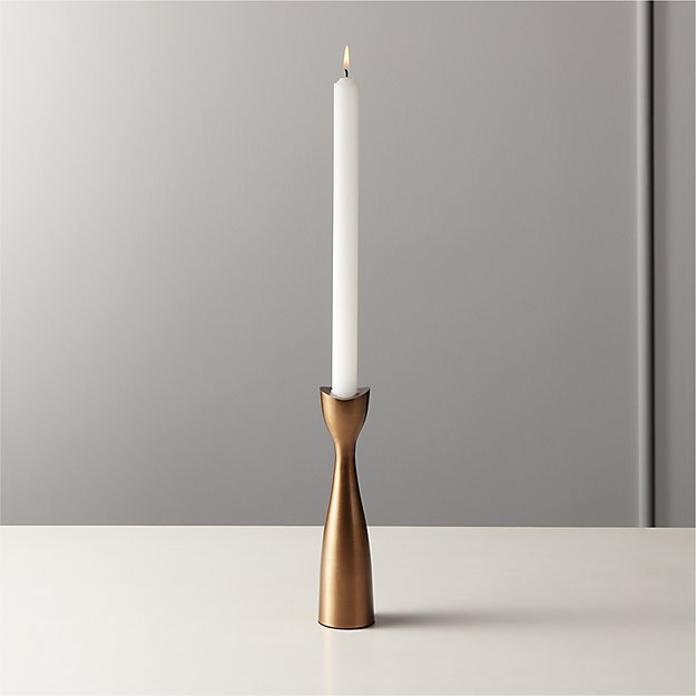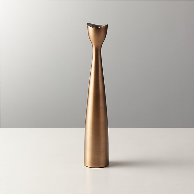 This dramatic candle holder rises to a sculptural top. Make this the conversation piece in your living space.Holds one tapered candle.