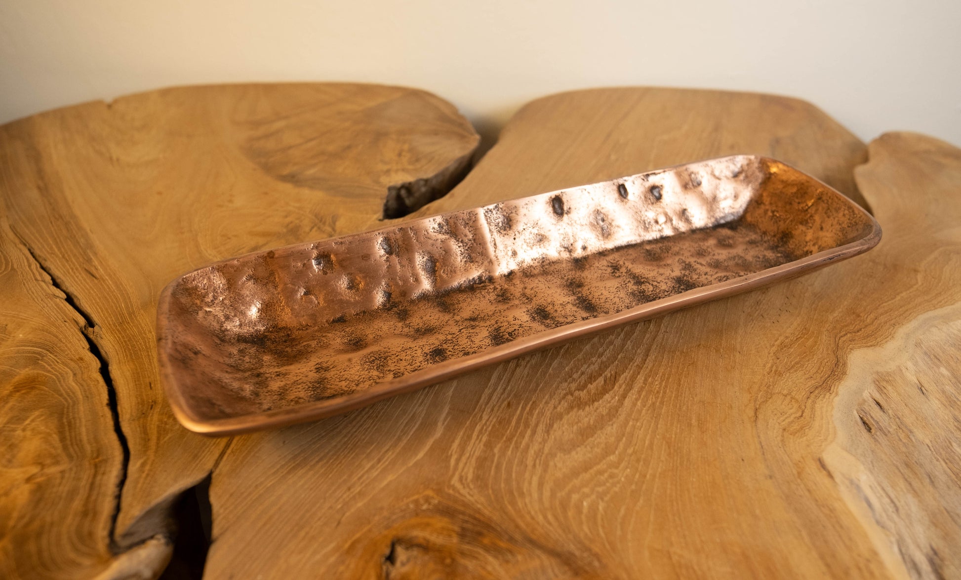 Elevate your home decor and serving style with this stunning Hammered Copper Rectangular Tray. Expertly handcrafted, this tray features a unique hammered texture that beautifully reflects light, adding a touch of elegance to any setting. Its warm copper finish exudes sophistication, making it a versatile piece for both functional use and decorative purposes.