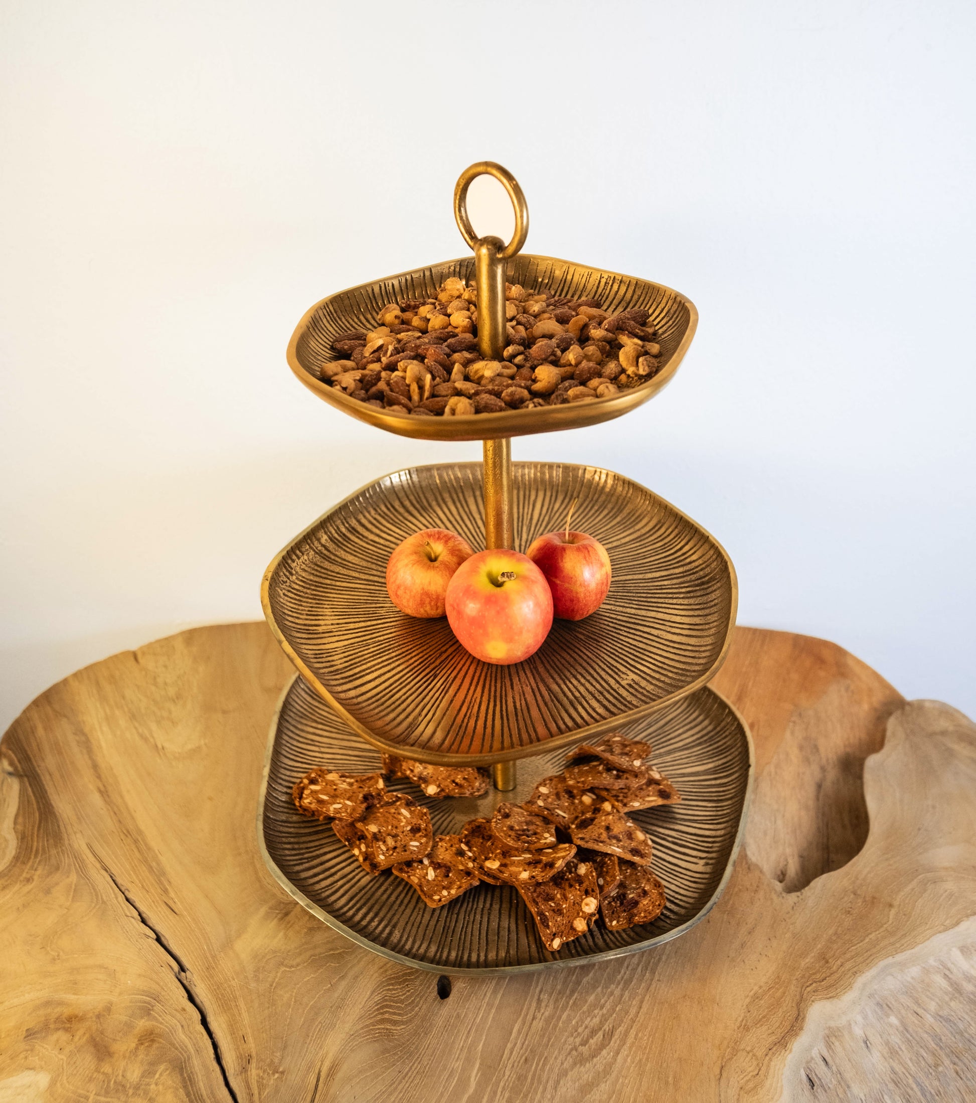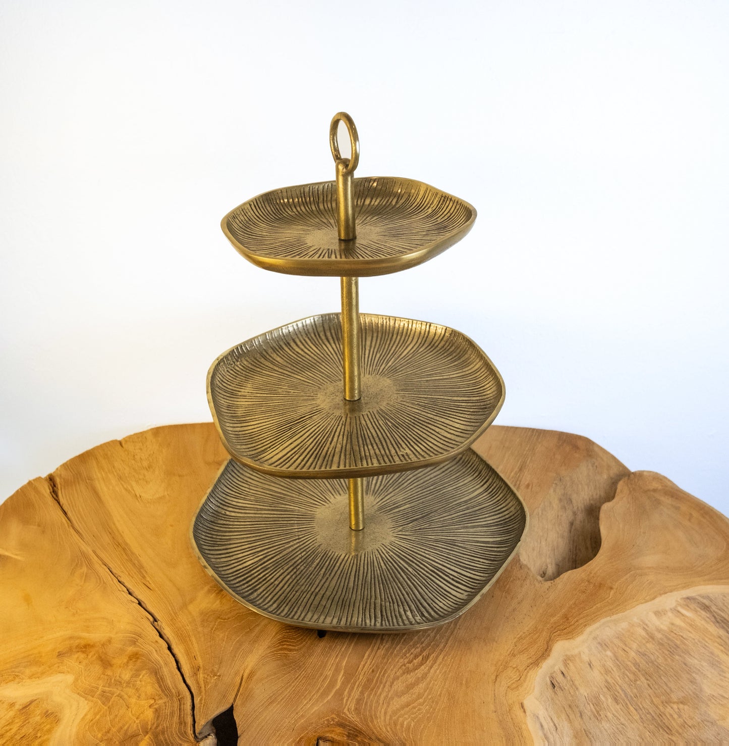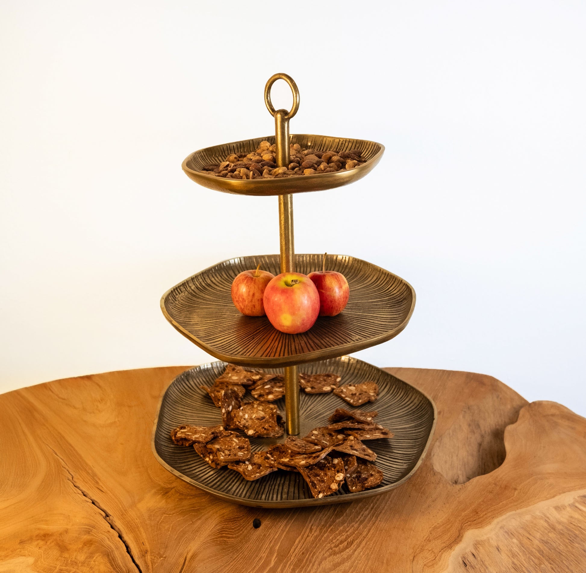Yosemite Handcrafted Antique Brass 3-Tier Serving Stand